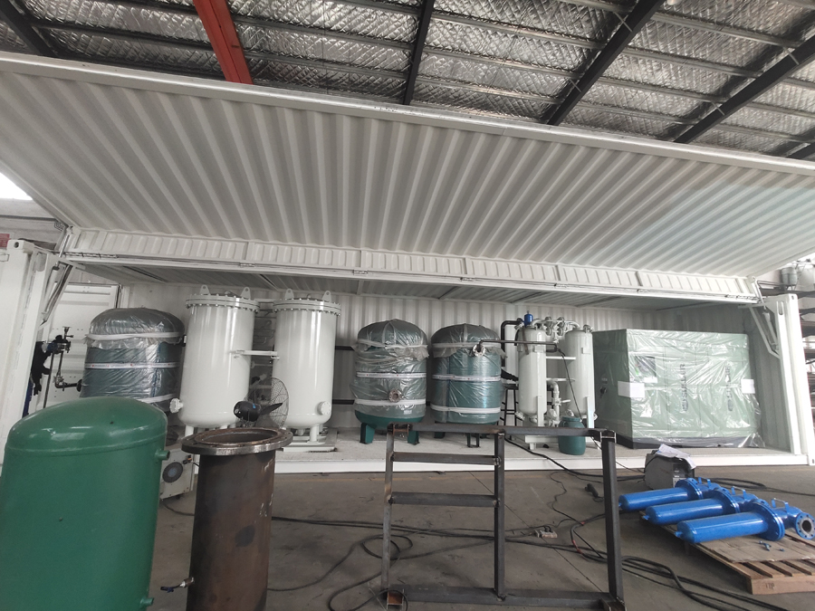 | 集装箱式制氮机是以PSA变压吸附式制氮机设备为主。集装箱式制氮机设备将优质碳分子筛作为该设备的吸附剂,因碳分子筛对气体的吸附效果不同,实现气体分离提纯的效果这一过程被称为PSA变压吸附式制氮技术,将该设备嵌入集装箱中配合其他相关空分设备一同镶嵌入集装箱内进行使用形成集装箱式制氮机。 | ||||||||||||||||||||||||||||||||||||||