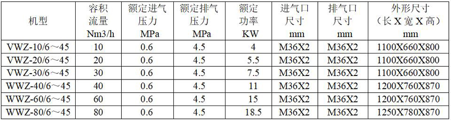 吸气压力:(-0.05)~ 0.6Mpa(G),排气压力: ≤5 Mpa(G)