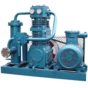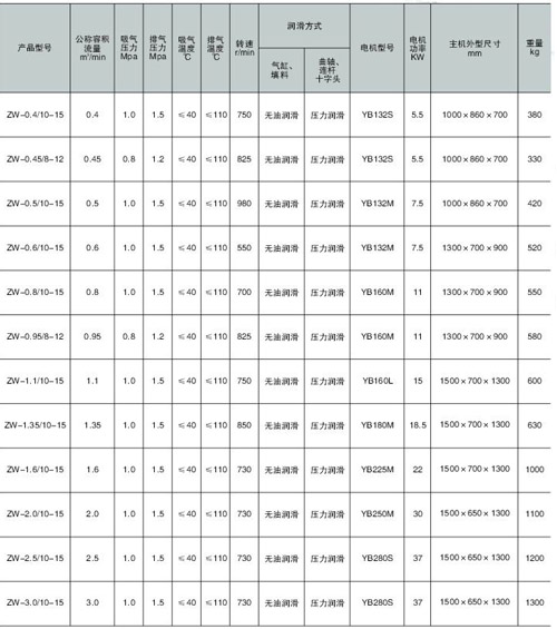 我公司生产的各类液化气、石油气系列压缩机均为无油润滑往复活塞式。压缩机的气缸、填料部件均为无油润滑,保证了其工作介质的纯度,曲轴、连杆、十字头部件为压力润滑,以保证润滑的可靠性。 ZW、ZG系列压缩机为立式、风冷、单作用无油润滑往复活塞式,DW/2DG系列压缩机为对称平衡式(其一、二阶段往复惯性力离心力完全平衡)、惯性力矩、离心力矩小等特点。 VW系列液化气压缩机系V型无油润滑式,具有振动小、噪音低、运转平衡、结构紧凑、排气量大、操作方便、安全可靠等。
